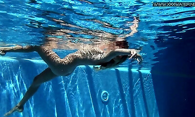 super-sexy gebräunte stunner im bikini mary kalisy zeigt atemberaubende unterwasser-striptease
