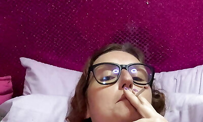 rauchen und spritzen mit der natürlichen, sexy, super echten mutter rachel wriggler, bevor sie von ihrem pelzigen vierbeinigen mitbewohner erwischt wird