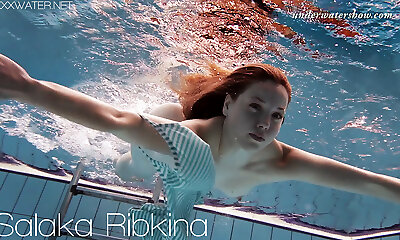 Underwater getting off from a cute teen