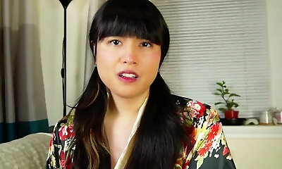 Adorable and petite Asian tranny wanking her cock and jizzing