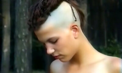 Skinny and tall punk gal with two horny men in the forest