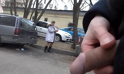 在街上向女孩询问信息,我把我的鸡巴拿出来手淫