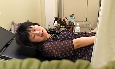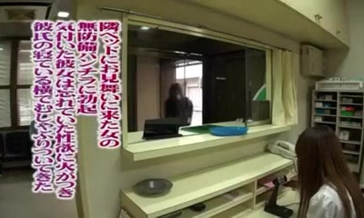 日本黑发与娇小的乳房越来越骨在医疗中心,同时照顾她的螺柱
