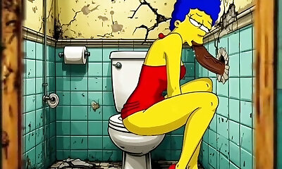 die simpsons-pornoparodie: sexy betrügerische frau marge lässt sich von einem schwarzen kerl auf der öffentlichen toilette ficken