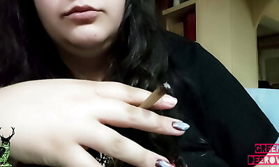 eine rauchende heiße brünette babe aus deutschland bekommt zwei ladungen sperma in den mund