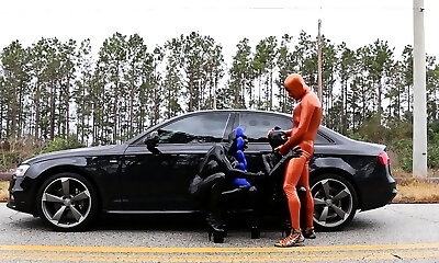 ساخته شده یک سوراخ در شلوار لاتکس به فاک یک دوست هیجان زده با