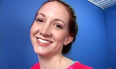 Redhead Cadence Calibre blows a dick and gulps cum