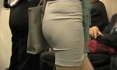 Skintight dress on a curvaceous Japanese babe he tongues out