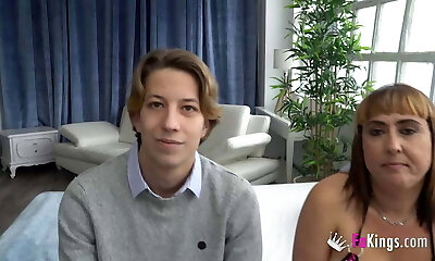 顽皮的奶奶教步骤孙子和他的GF热达到快感的高峰一起